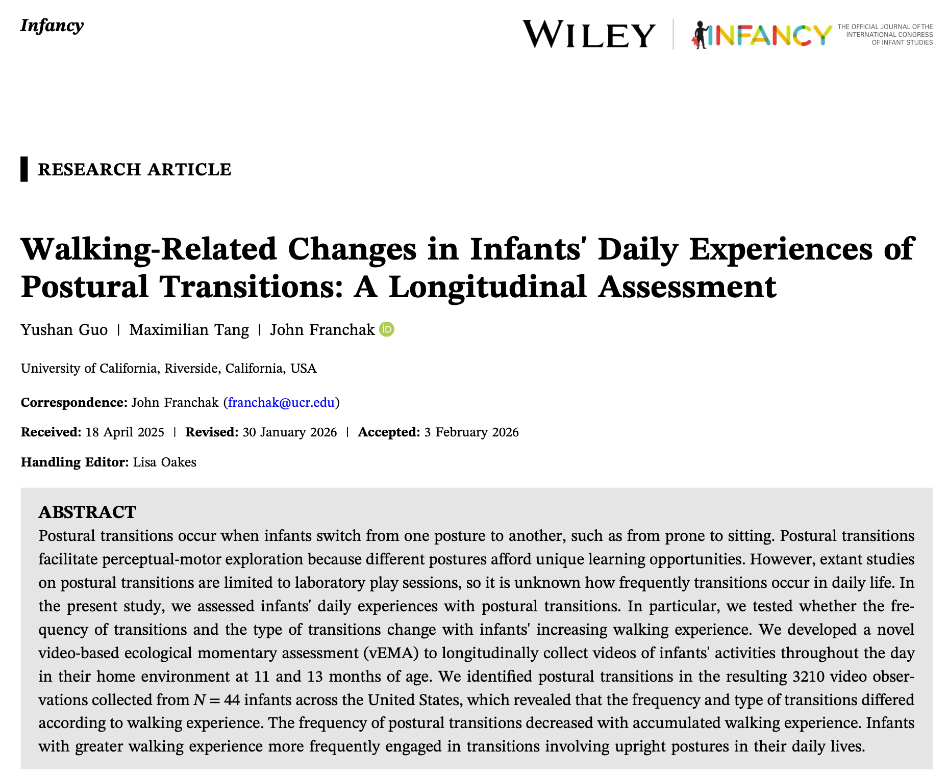 Dr. Franchak does not plan to accept a doctoral student for the 2026-2027 academic year.